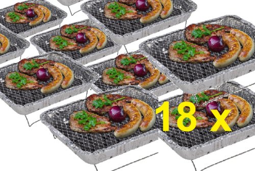 18 x Komplettset Einweggrill Edelstahl Grill Holzkohlegrill Klappgrill Gartengrill Picknickgrill MIT HOLZKOHLE . Preise vergleichen