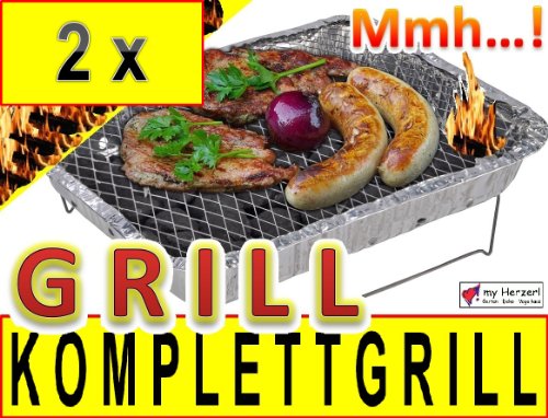2 x Vielseitiger Minigrill MIT HOLZKOHLE + ZÜNDFOLIE FÜR SCHNELLES UND LANGES GRILLEN Einweggrill CAMPINGGRILL mit Grillrost Edelstahl Grill Holzkohlegrill Einmalgrill Wegwerfgrill Sofortgrill.  SONDERANGEBOTE